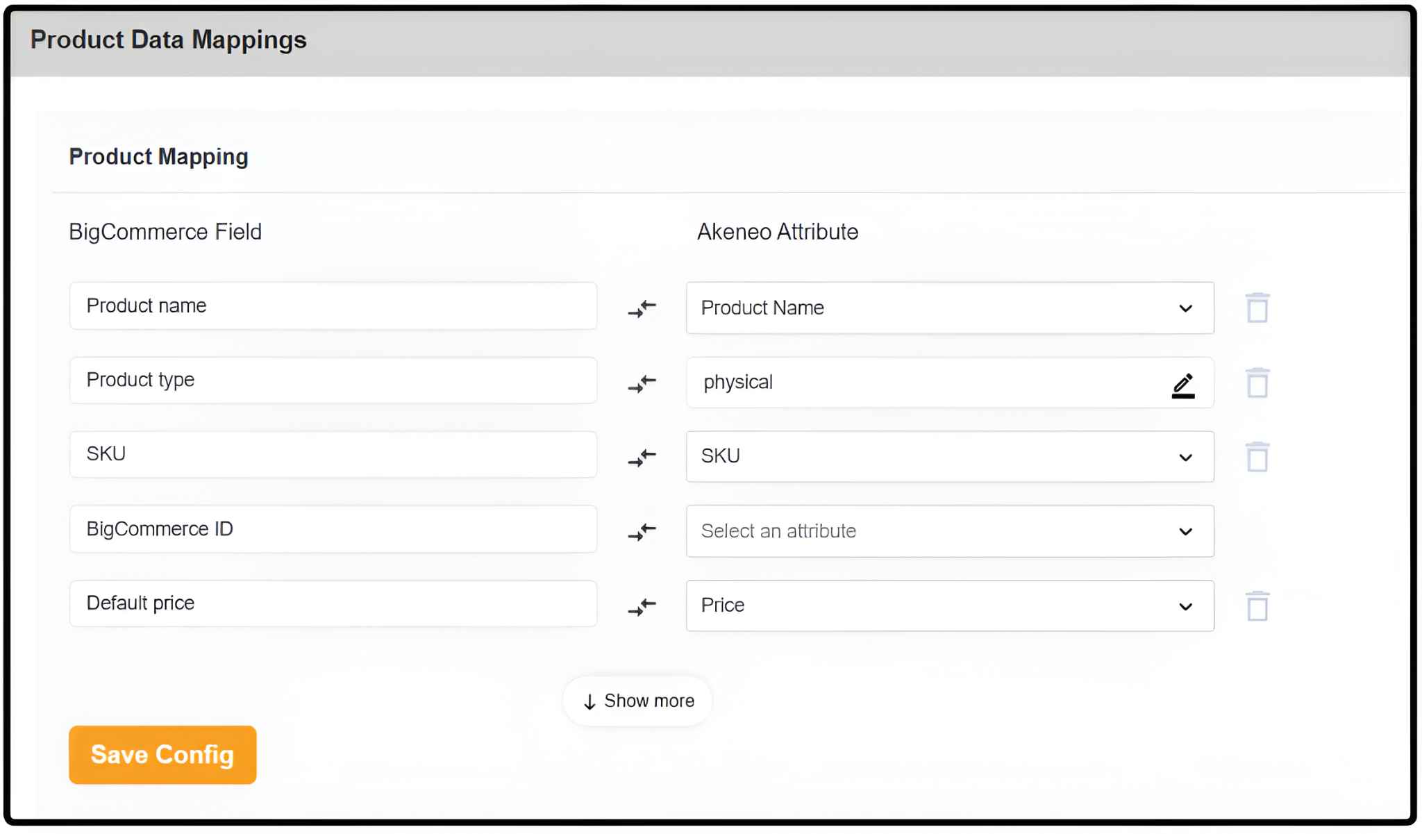 - Map all the required BigCommerce fields to appropriate attributes in PIM.