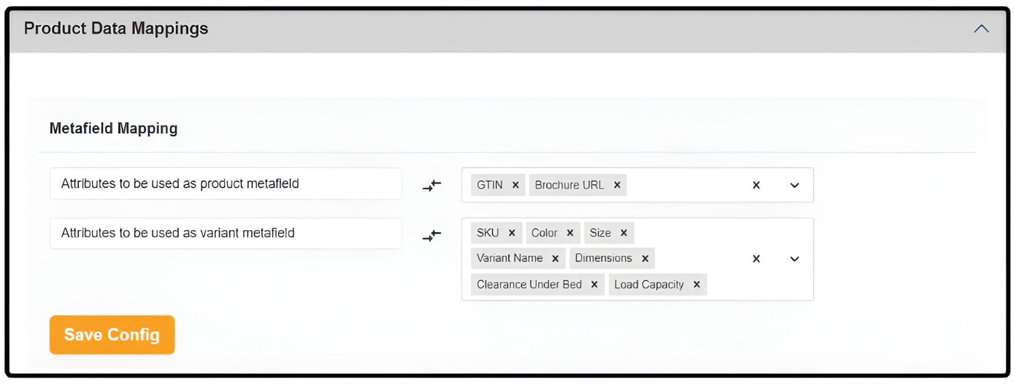 Map PIM attributes to BigCommerce metafields to deliver additional structured data.