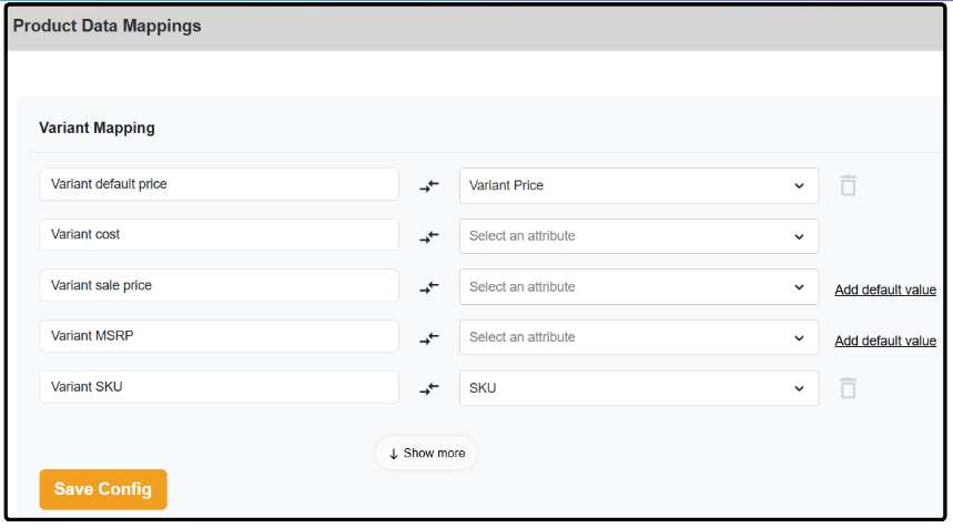 - Map the Variant BigCommerce fields to appropriate attributes in the PIM.