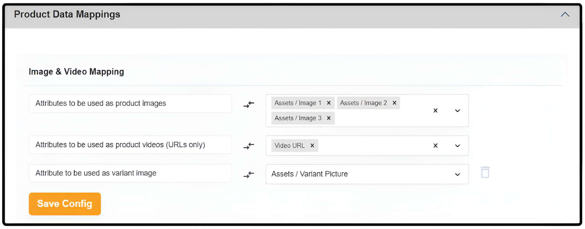 Map the PIM asset collection attributes, standard image or text attributes to be synced as Product/Variant images and video URLs in BigCommerce.